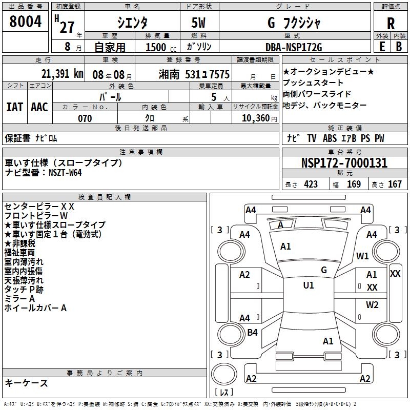 TOYOTA SIENTA G WELLFARE CAR - лот 8004