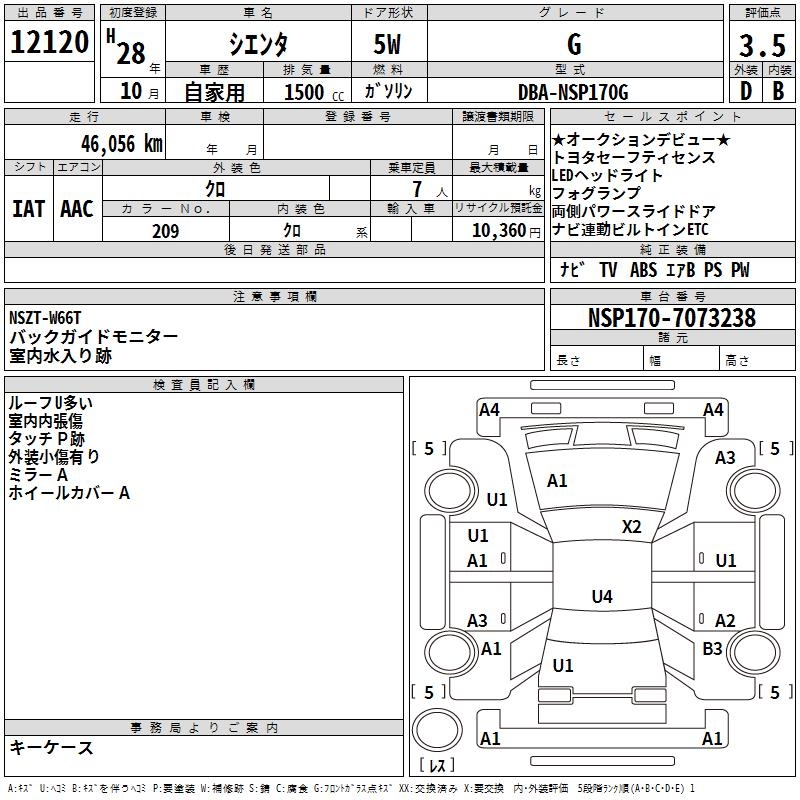 TOYOTA SIENTA G - лот 12120