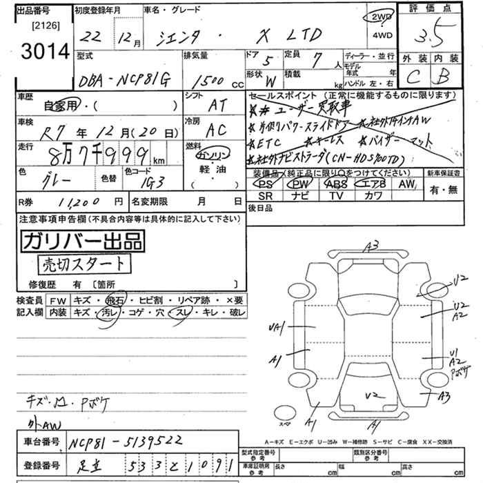 TOYOTA SIENTA X LTD - лот 3014
