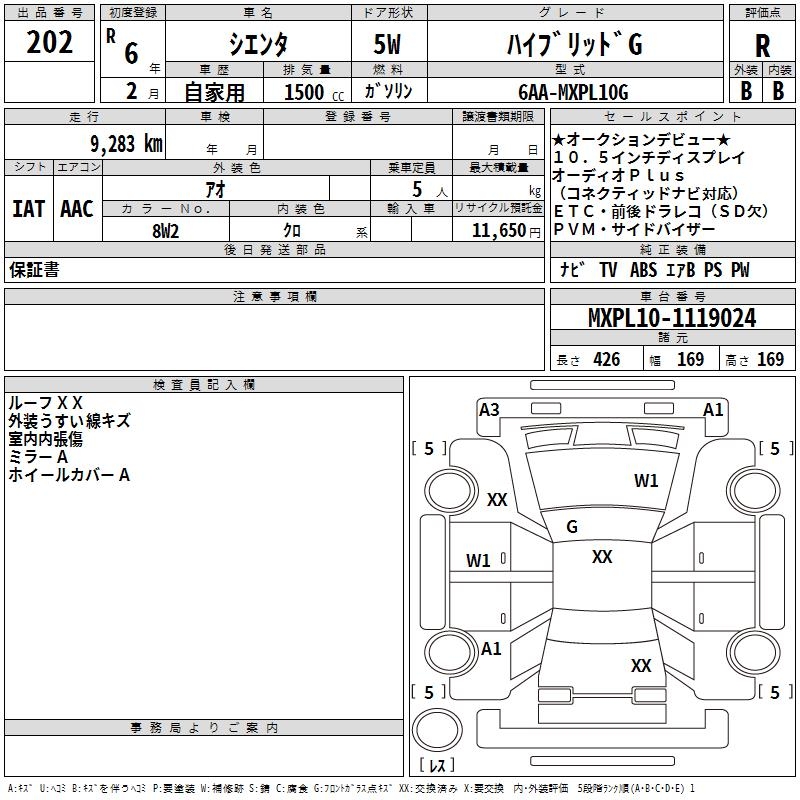 TOYOTA SIENTA HYBRID G - лот 202