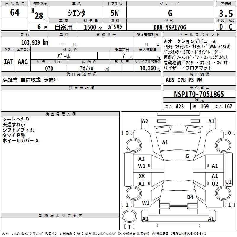TOYOTA SIENTA G - лот 64