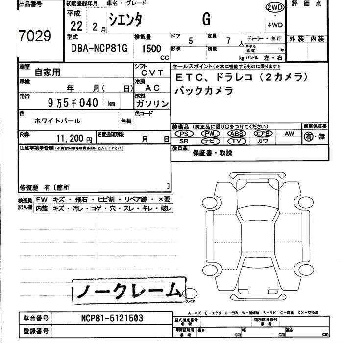 TOYOTA SIENTA G - лот 7029