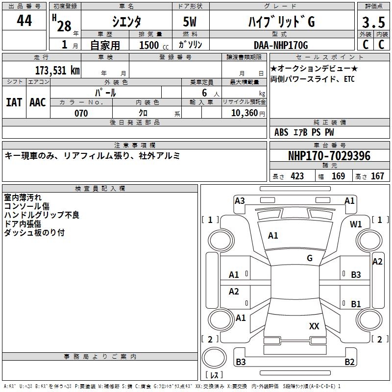 TOYOTA SIENTA HYBRID G - лот 44