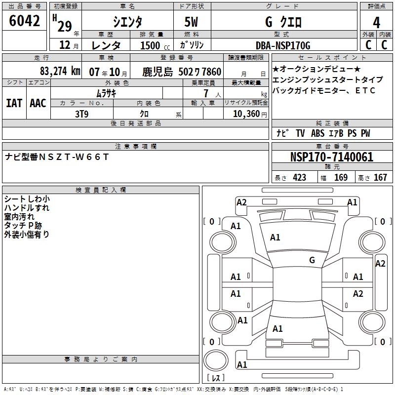 TOYOTA SIENTA GKERO - лот 6042