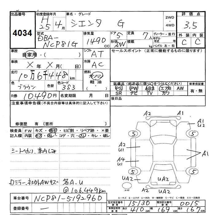 TOYOTA SIENTA G - лот 4034