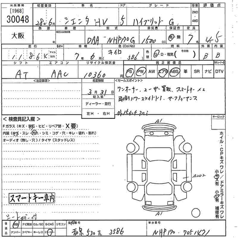 TOYOTA SIENTA HYBRID G - лот 30048