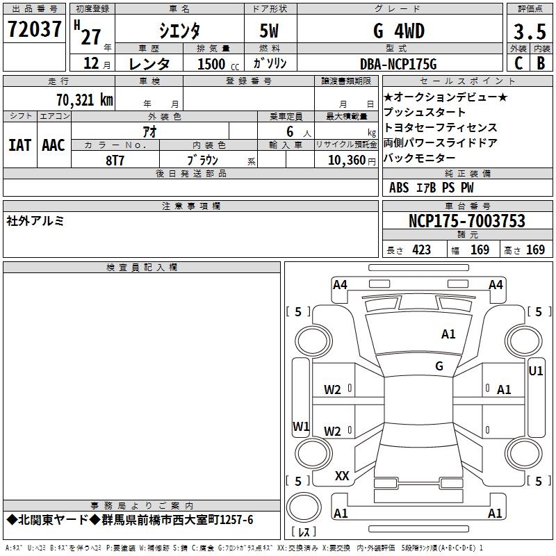 TOYOTA SIENTA G 4WD - лот 72037