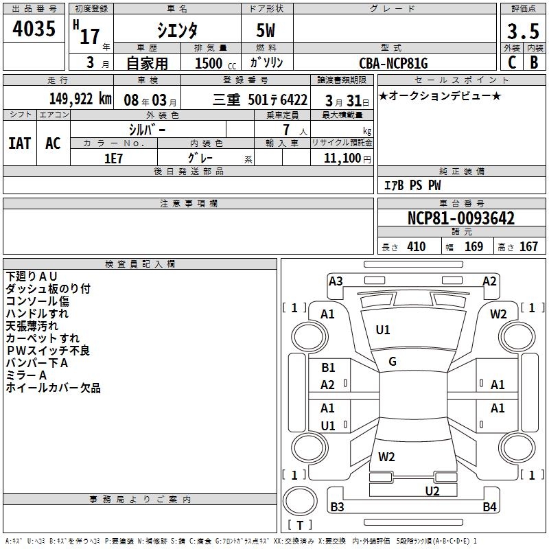 TOYOTA SIENTA - лот 4035