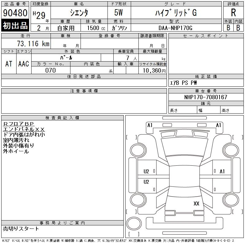 TOYOTA SIENTA HYBRID G - лот 90480