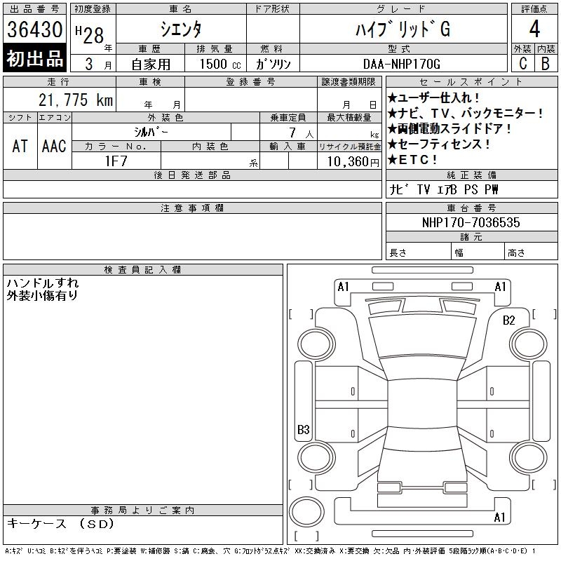 TOYOTA SIENTA HYBRID G - лот 36430