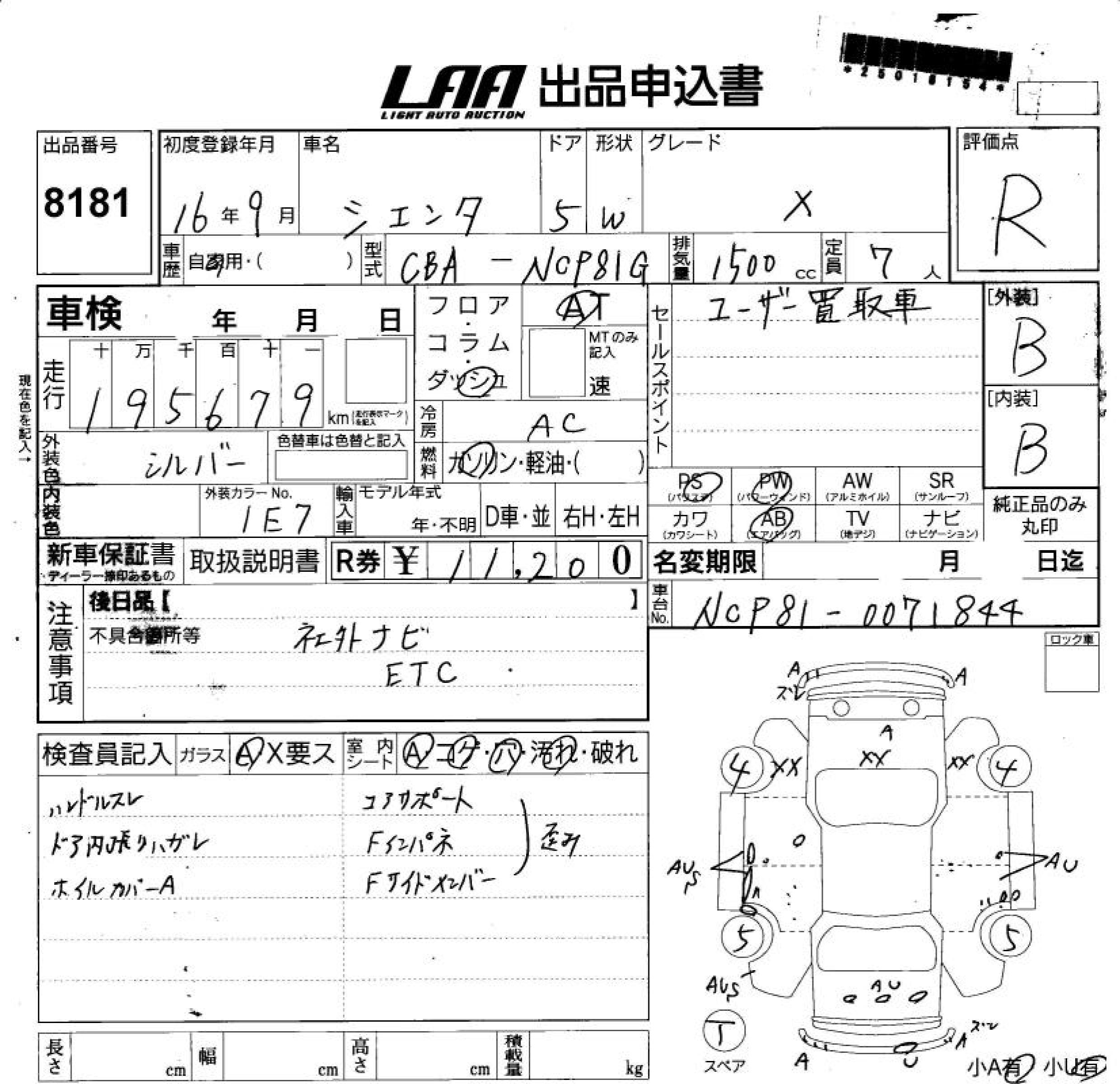 TOYOTA SIENTA X - лот 8181
