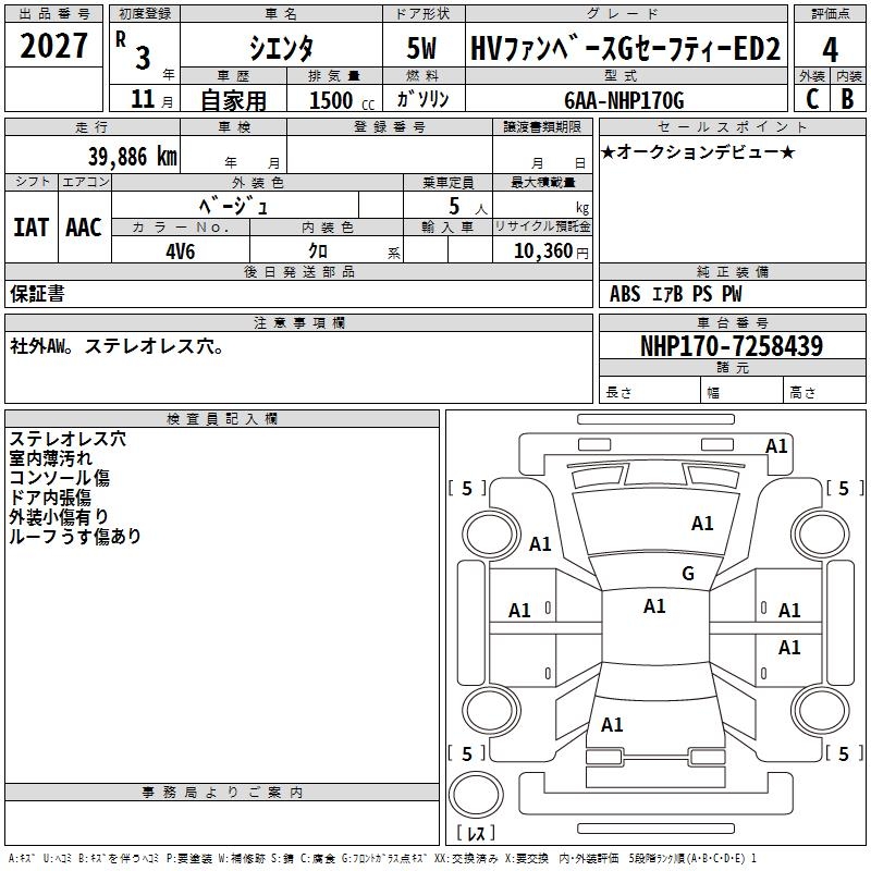 TOYOTA SIENTA HV FAN BASE G SAFETY -ED2 - лот 2027