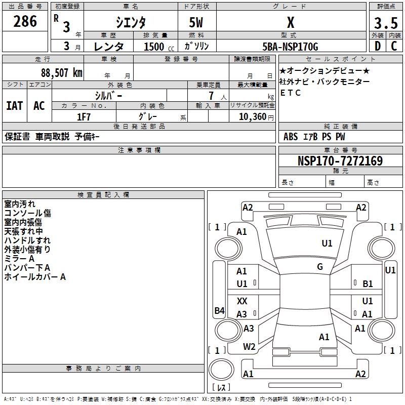 TOYOTA SIENTA X - лот 286