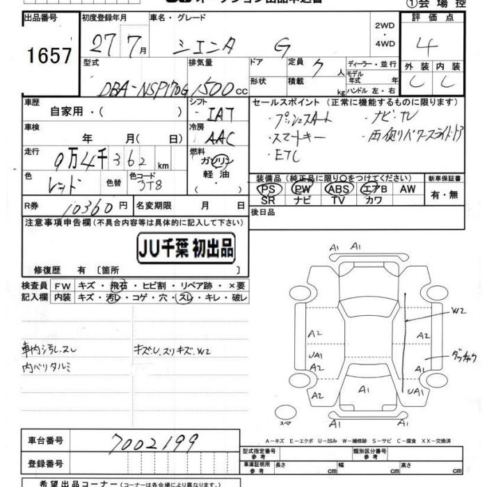 TOYOTA SIENTA G - лот 1657