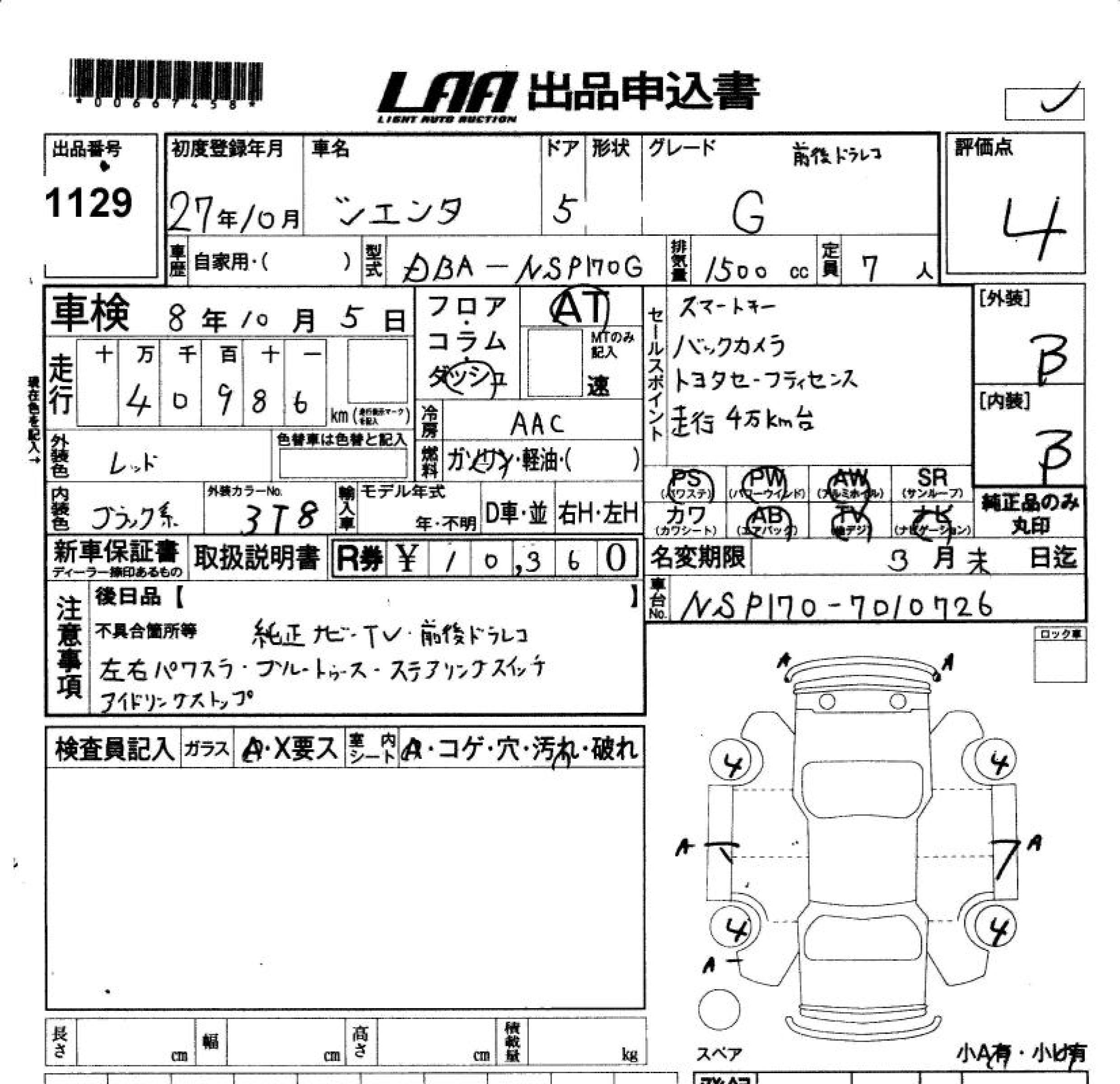 TOYOTA SIENTA G FRONT BACK DOLAREKO - лот 1129