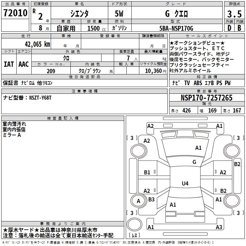 TOYOTA SIENTA GKERO - лот 72010