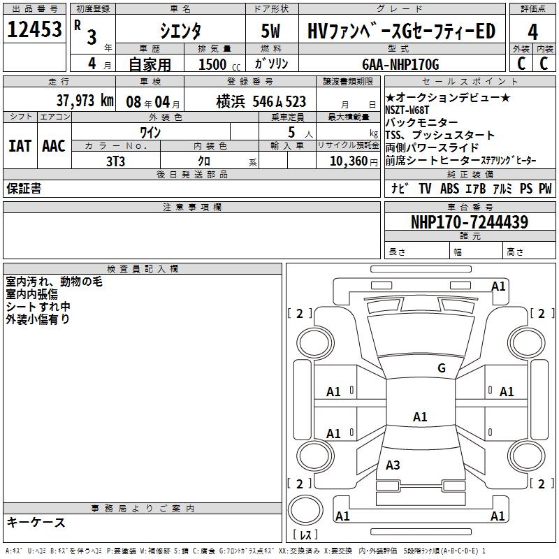 TOYOTA SIENTA HV FAN BASE G SAFETY -ED - лот 12453