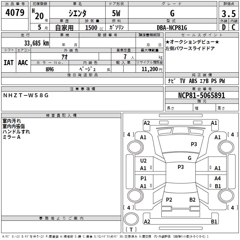 TOYOTA SIENTA G - лот 4079
