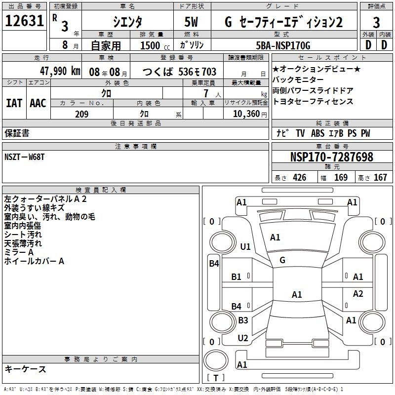 TOYOTA SIENTA G SAFETY - EDITION 2 - лот 12631