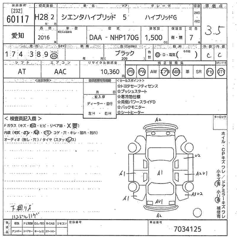 TOYOTA SIENTA HYBRID G - лот 60117