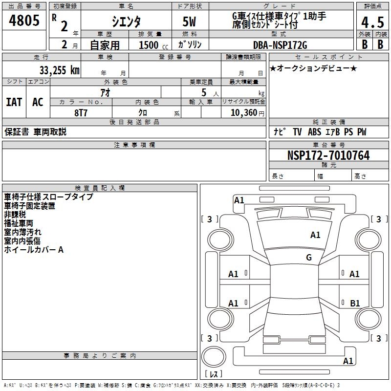 TOYOTA SIENTA GKRU MY S USE CAR TYPE 1JOSI - лот 4805