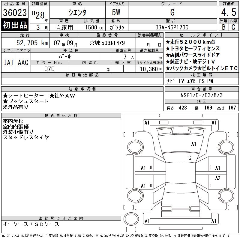 TOYOTA SIENTA G - лот 36023