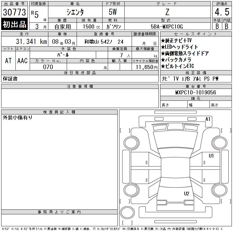 TOYOTA SIENTA Z - лот 30773