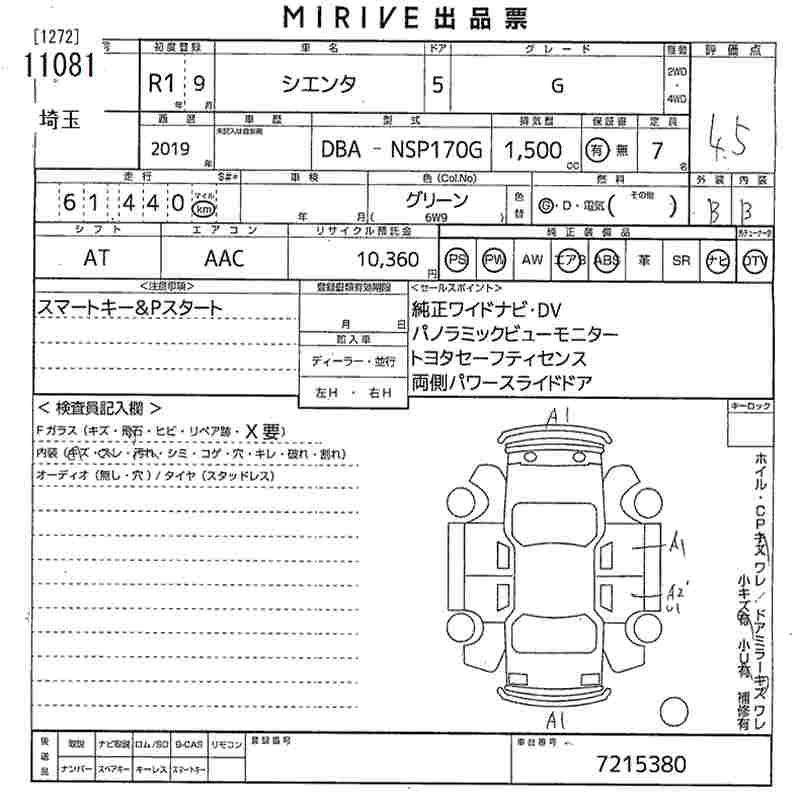 TOYOTA SIENTA G - лот 11081