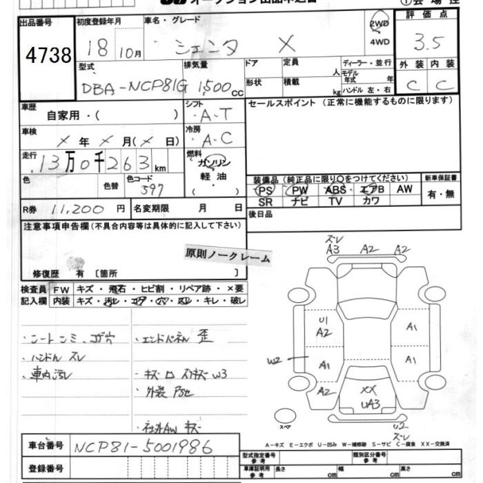 TOYOTA SIENTA X - лот 4738