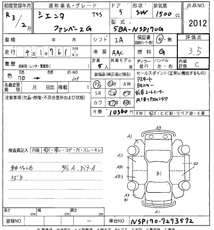 TOYOTA SIENTA FAN BASE G TSS - лот 2012