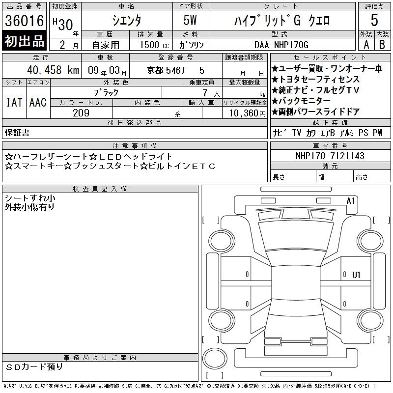 TOYOTA SIENTA HYBRID GKERO - лот 36016