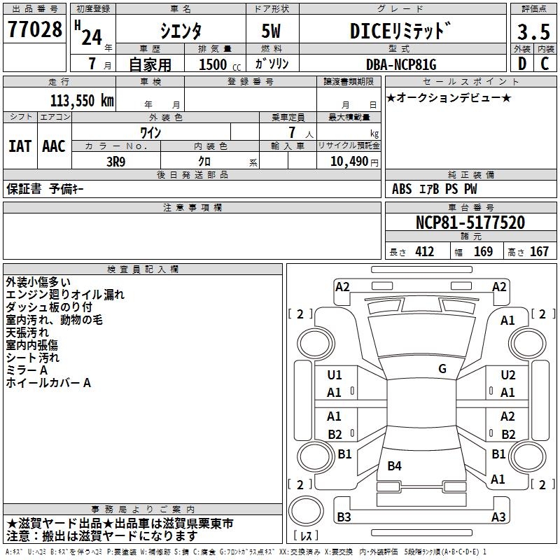 TOYOTA SIENTA DICE LIMITED - лот 77028