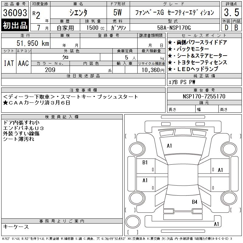 TOYOTA SIENTA FAN BASE G SAFETY -ED - лот 36093