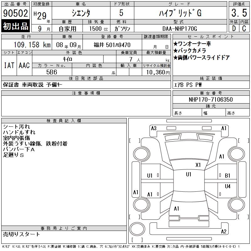 TOYOTA SIENTA HYBRID G - лот 90502