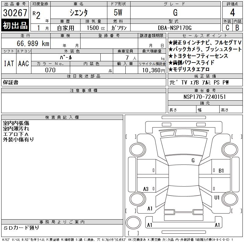TOYOTA SIENTA G - лот 30267