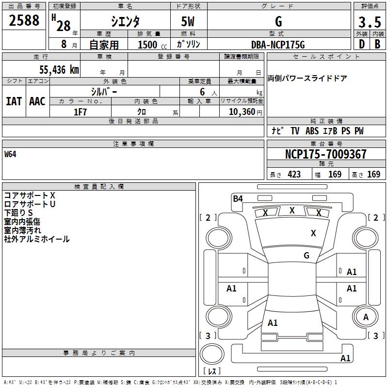 TOYOTA SIENTA G - лот 2588