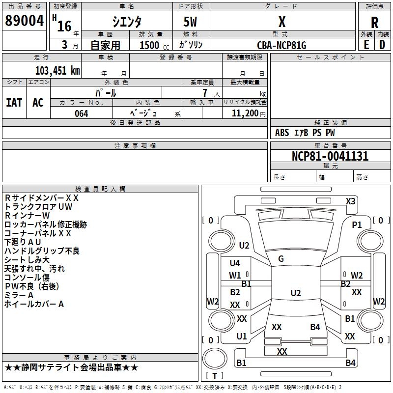 TOYOTA SIENTA X - лот 89004