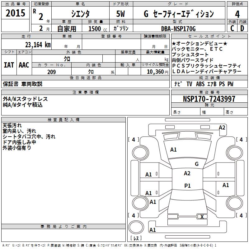TOYOTA SIENTA G SAFETY - EDITION - лот 2015
