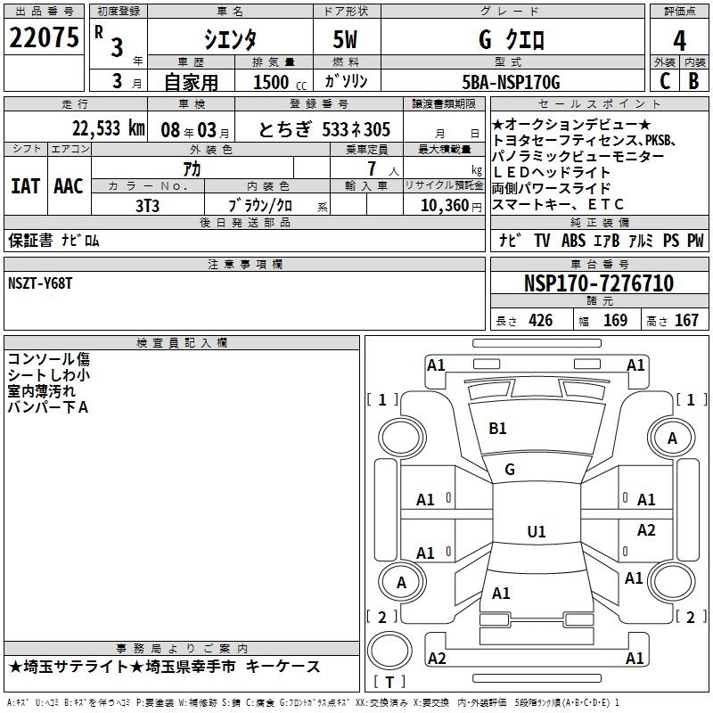 TOYOTA SIENTA GKERO - лот 22075