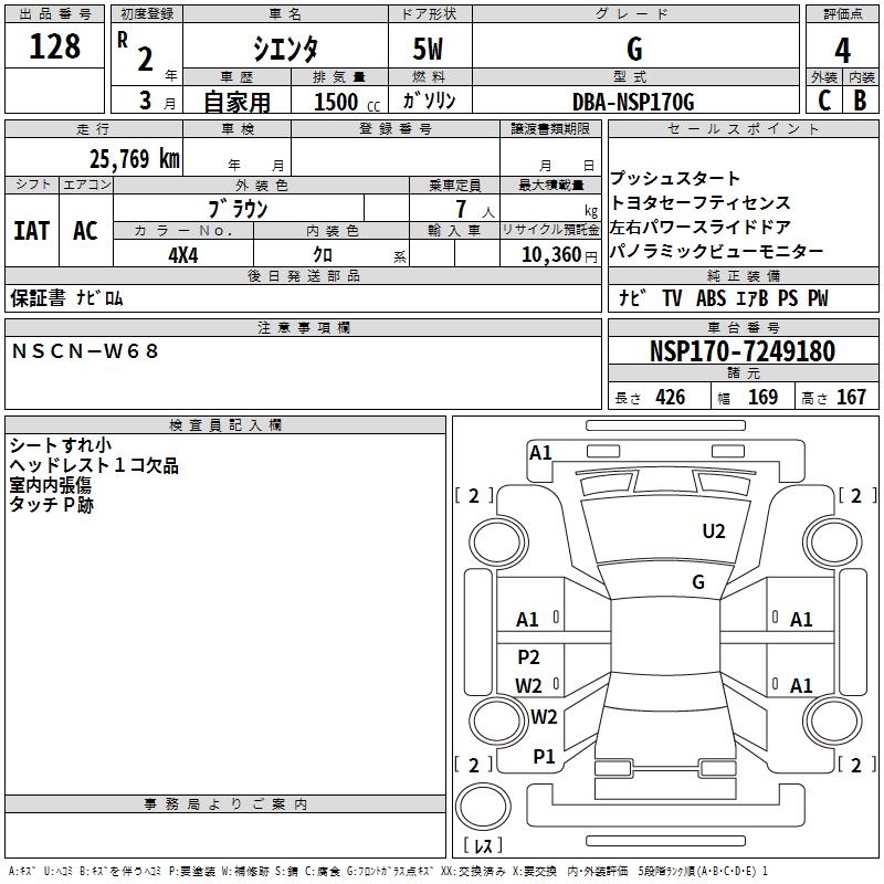 TOYOTA SIENTA G - лот 128