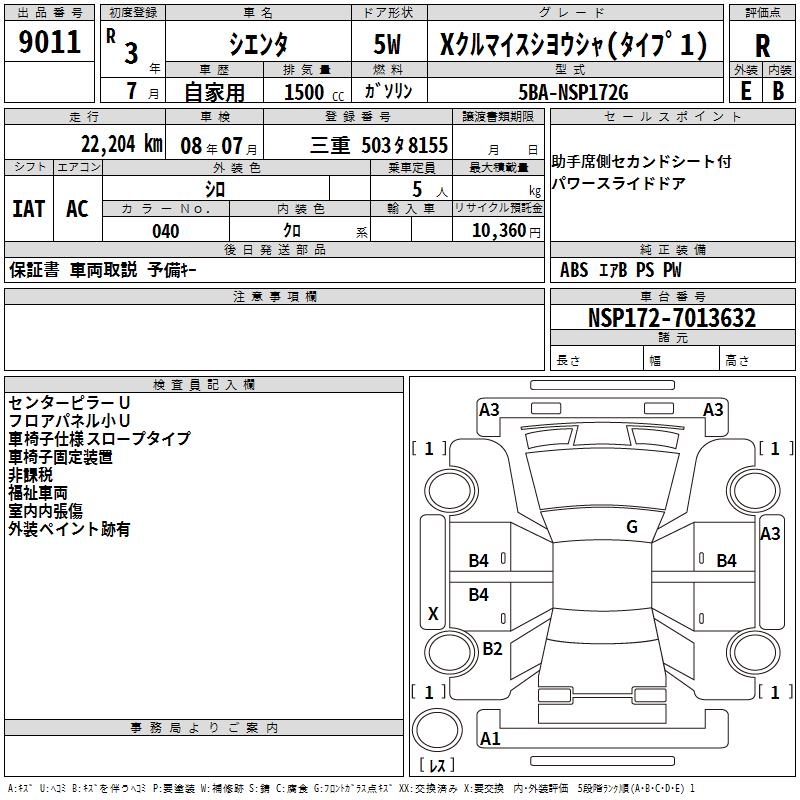 TOYOTA SIENTA XKRU MY S USE CAR ( TYPE 1) - лот 9011