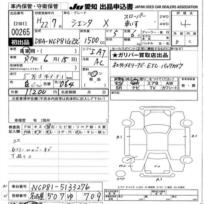 TOYOTA SIENTA XKRU MY S USE CAR SLOPE - лот 265