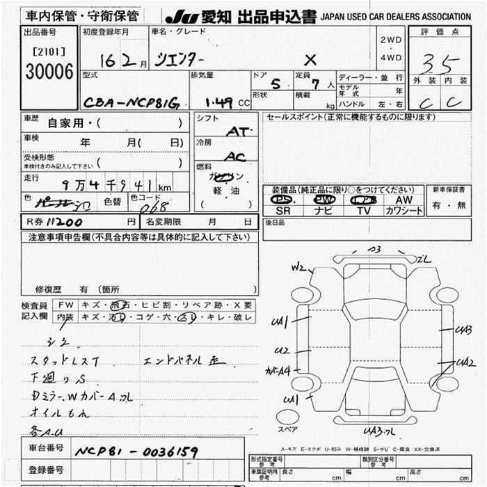TOYOTA SIENTA X - лот 30006