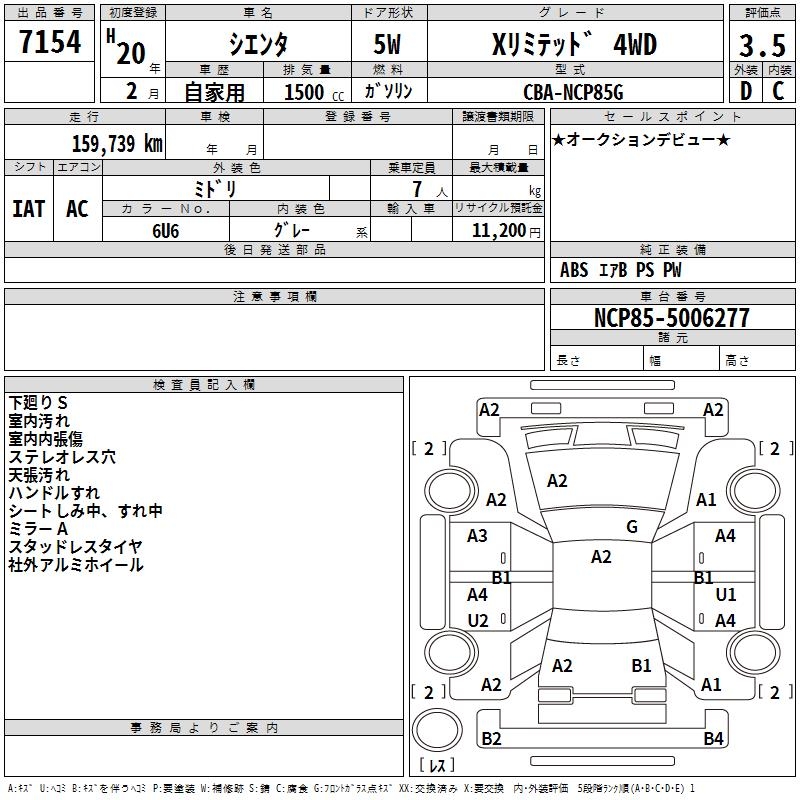 TOYOTA SIENTA X LIMITED 4WD - лот 7154