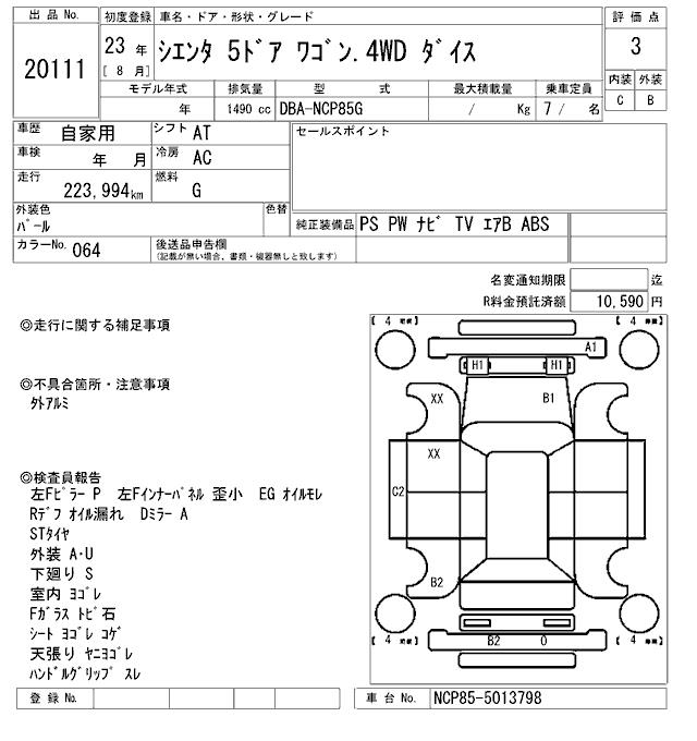 TOYOTA SIENTA DICE - лот 20111