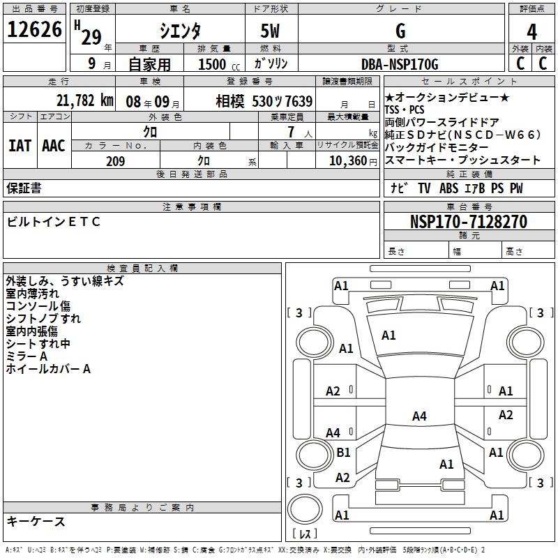 TOYOTA SIENTA G - лот 12626