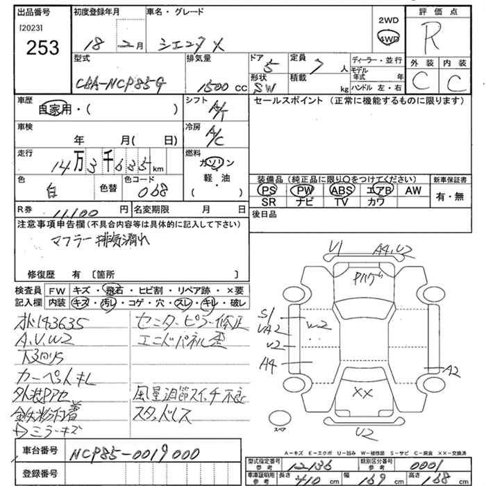 TOYOTA SIENTA 4WD X - лот 253