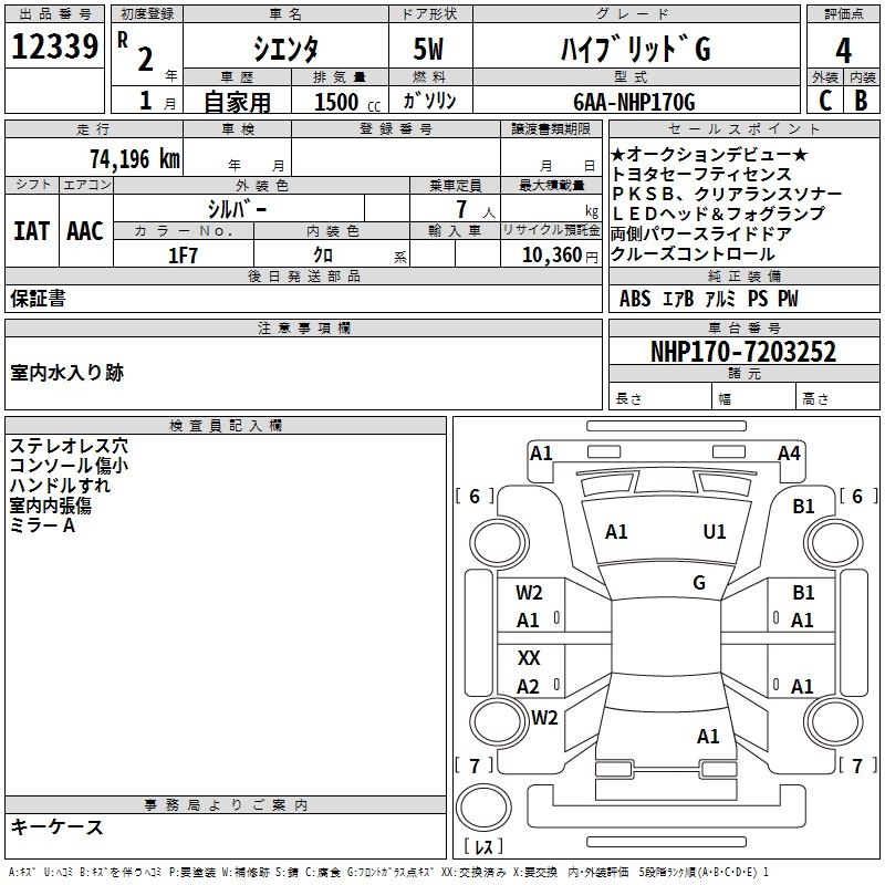 TOYOTA SIENTA HYBRID G - лот 12339