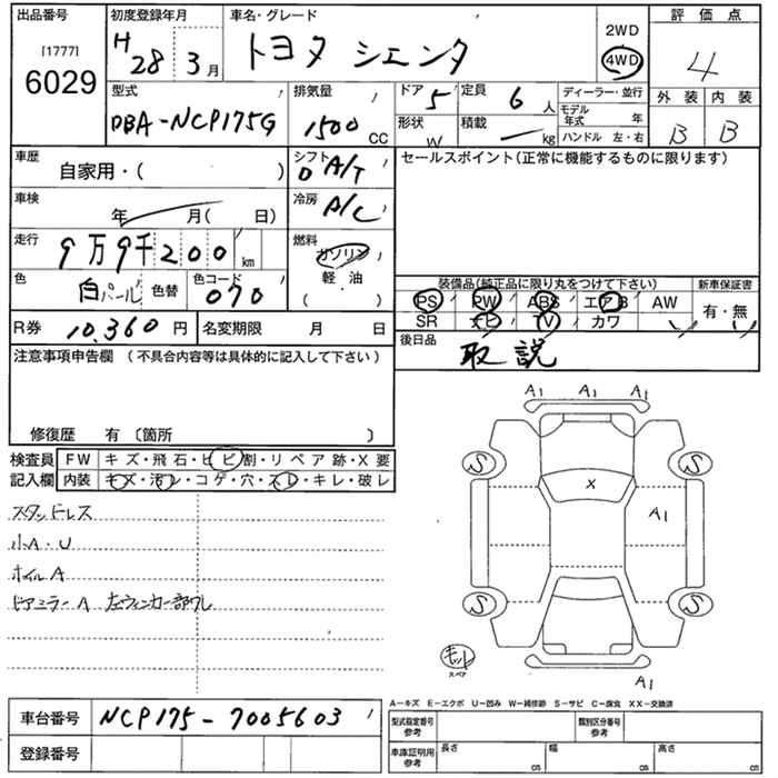 TOYOTA SIENTA 4WD - лот 6029