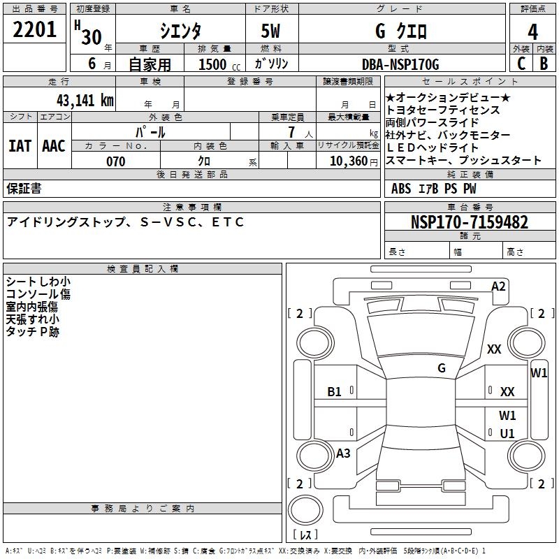 TOYOTA SIENTA GKERO - лот 2201